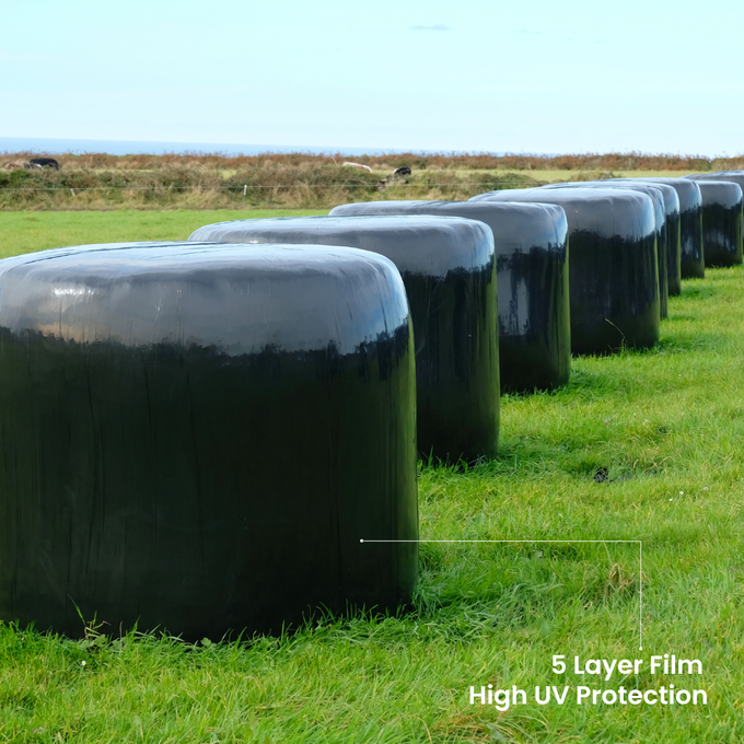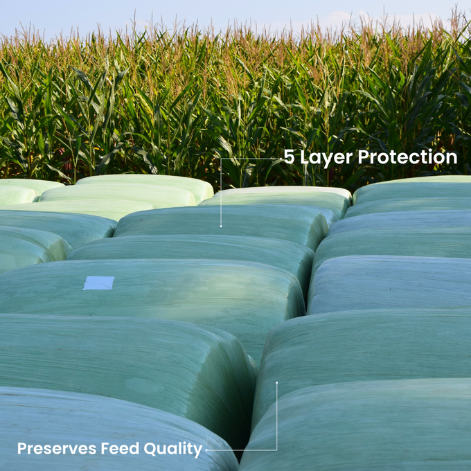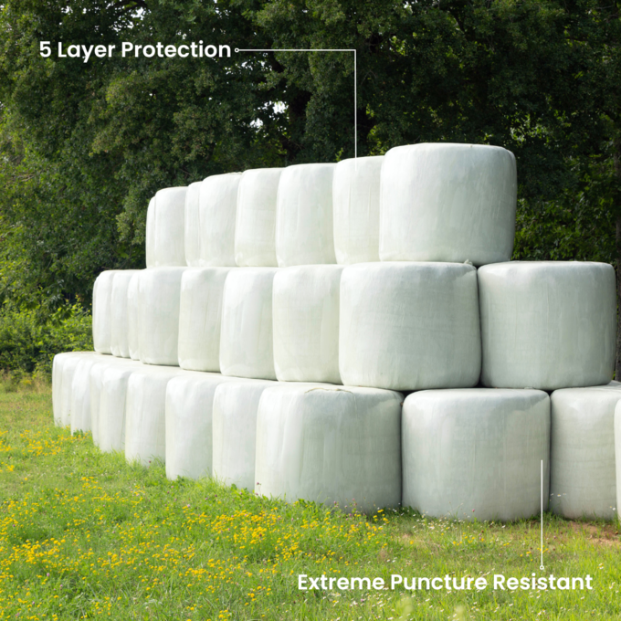 Bale Tuff's 5-layer silage wrap film is extremely puncture resistant and has a high air permeability rating. This means it's less likely to let in unwanted air or get holes from sharp strands of forage. If you're looking for one of the strongest products on the market, this bale wrap is for you!