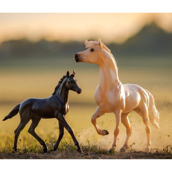 Crafted with meticulous attention to detail and inspired by real-life events, Breyer's Cloud's Encore & Tor captures the essence of these remarkable creatures, allowing enthusiasts of all ages to experience the magic of the Pryor Mountains in their own homes. With each intricately designed figurine, collectors and admirers alike can immerse themselves in the captivating world of wild mustangs and celebrate the enduring spirit of freedom and adventure.