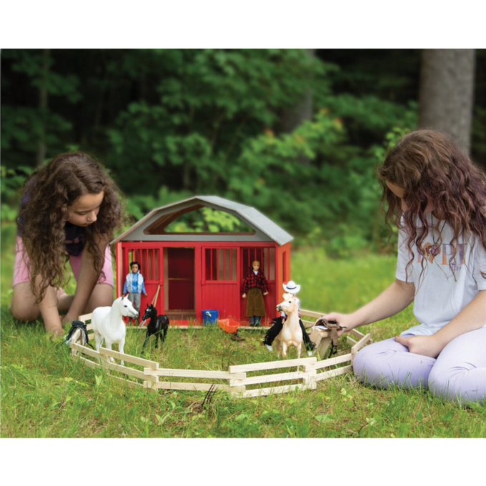 With its thoughtful design, superior craftsmanship, and endless potential for imaginative play, the Breyer Two-Stall Farm is a must-have addition to any horse enthusiast's collection. Create unforgettable moments and bring your equestrian dreams to life with this charming barn.
