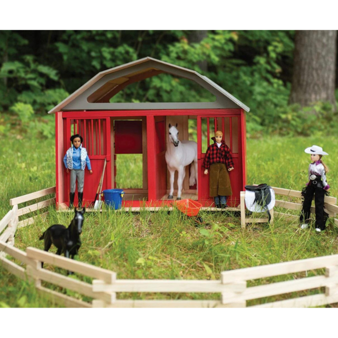 Constructed from natural wood, this barn exudes rustic elegance while maintaining durability for years of play and display. The timeless design complements any Breyer model horse collection, adding a touch of country charm to your equestrian displays.