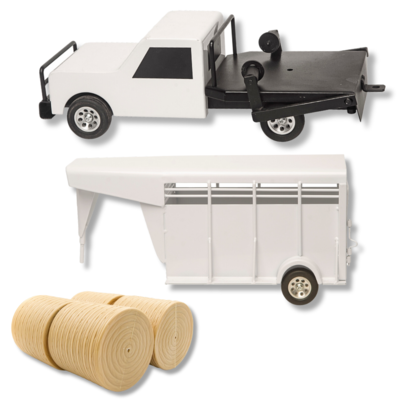 One standout feature of this toy truck is the fully functioning round bale lift, adding an interactive element to play. The attachment capability allows the Flatbed Hay Truck to effortlessly pull any of the LB bumper pull or gooseneck trailers, expanding play possibilities and creating a cohesive and immersive farm environment. With dimensions measuring L15.00xW5.50xH5.00", this toy truck is perfectly scaled to complement other Little Buster toys. Upgrade your Little Buster ranching experience with the Flatbed Hay Truck—a reliable, realistic, and indispensable tool for your child's imaginative play adventures.