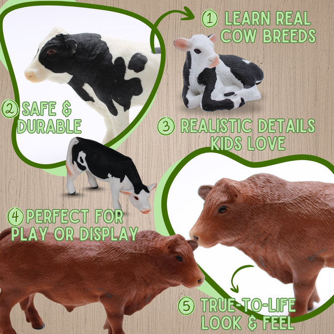 The lifelike detailing on each figure, from the distinctive patterns of the Holstein to the robust build of the Angus Bull, brings these animals to life, inspiring hours of imaginative play. Children can explore the differences between each breed and learn more about their role in farming and dairy production, making this set not only fun but educational. The durable, non-toxic materials ensure that each figurine stands up to active play while maintaining its vibrant, realistic appearance.